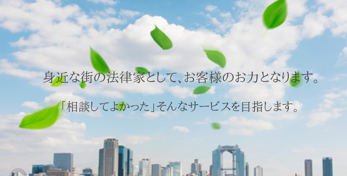 当事務所は常に+αのサービスを心掛けております。専門家であれば、依頼された業務をこなすのは当たり前です。依頼された業務をただ全うするだけではなく、依頼された業務が終わった後も、身近な法律家として、法律相談やコンサルティング等でお客様のお力になればと考えております。